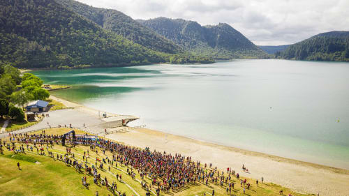 Lake Tikitapu plays host to the start line of the T21, as well as the Tikitapu aid station, which sees athletes from all four race distances pass through.